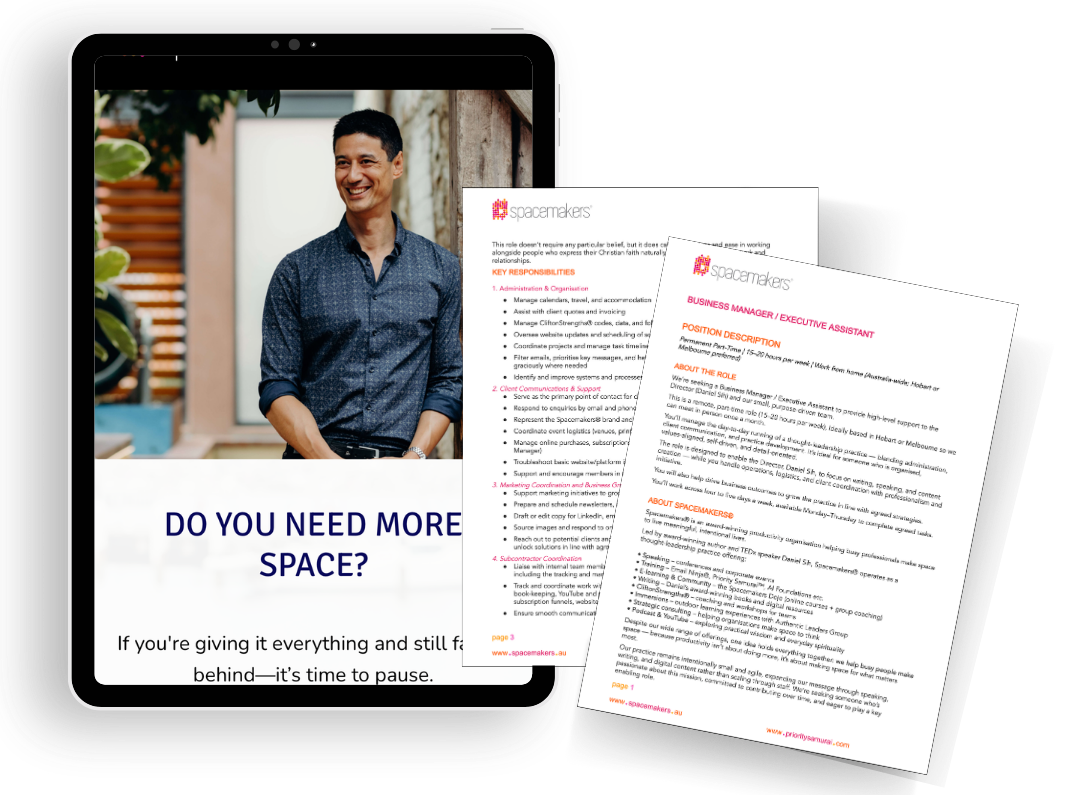 Spacemakers® is an award-winning productivity organisation helping busy professionals make space to live meaningful, intentional lives.